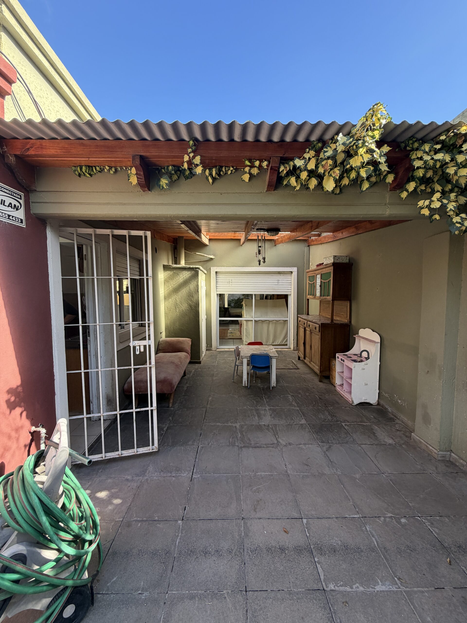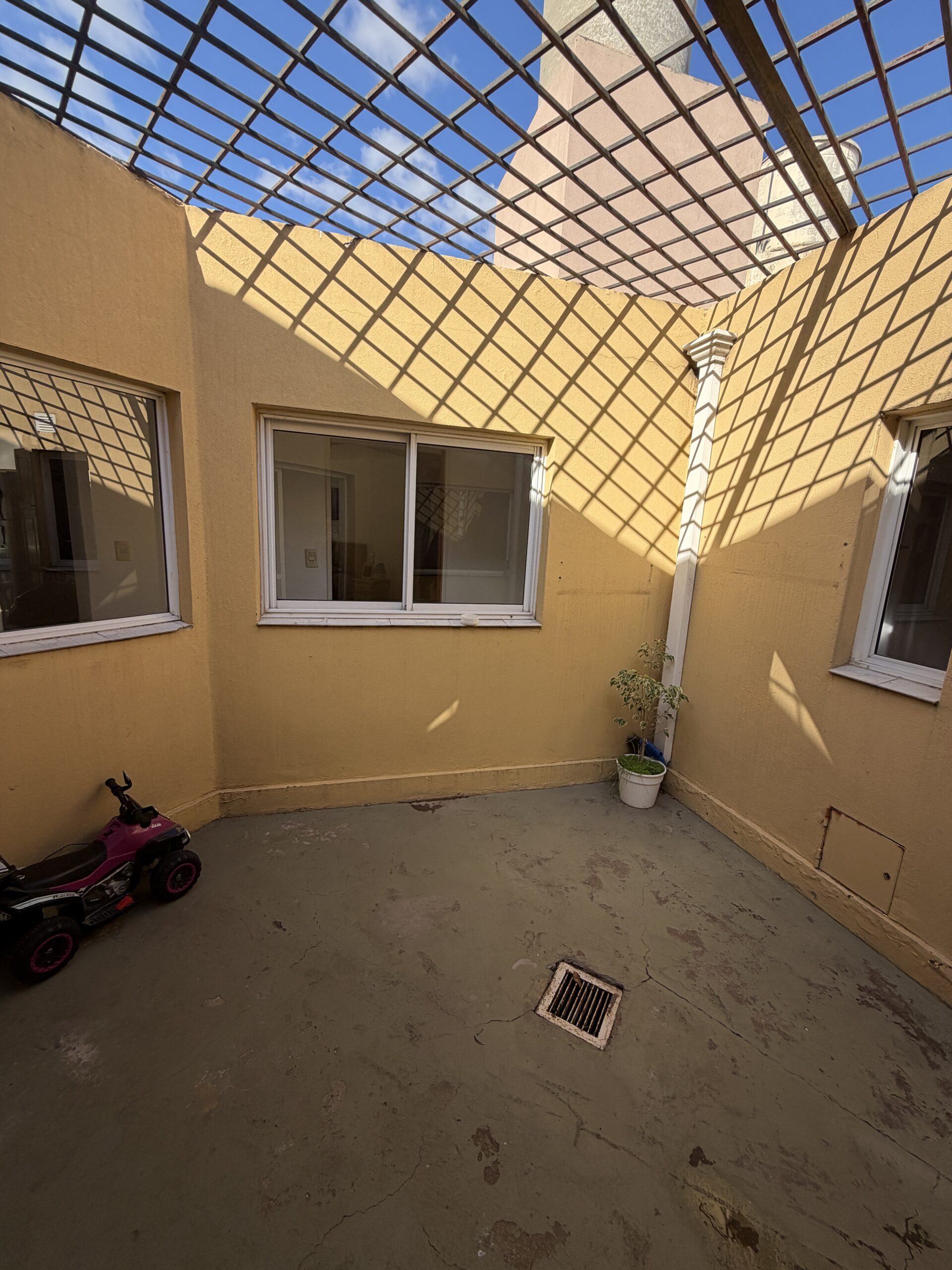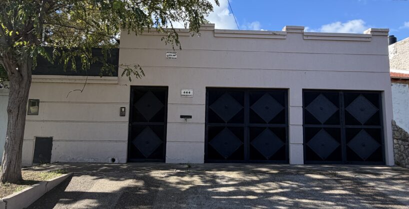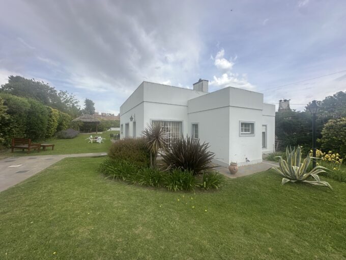 Distribuida toda en planta baja, con patio delantero y pérgola en el frente para dos vehículos.