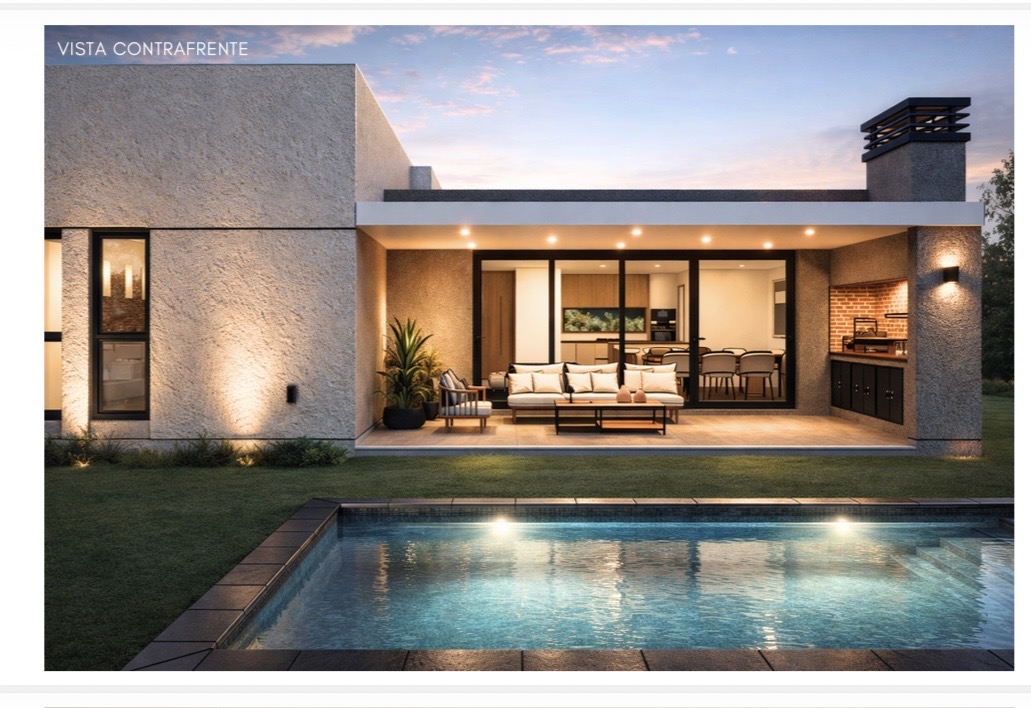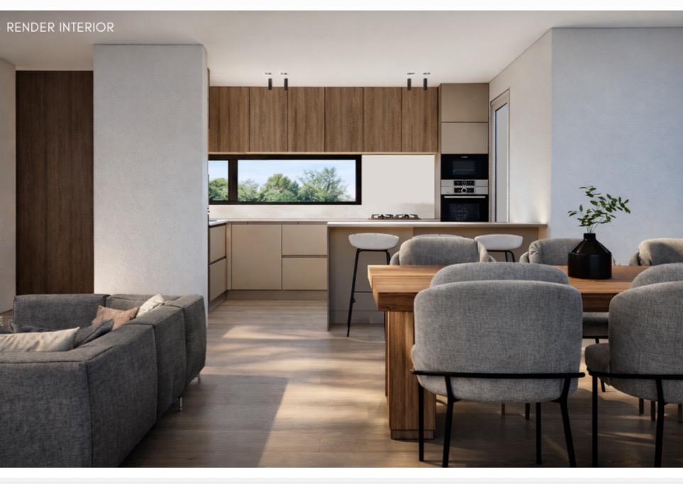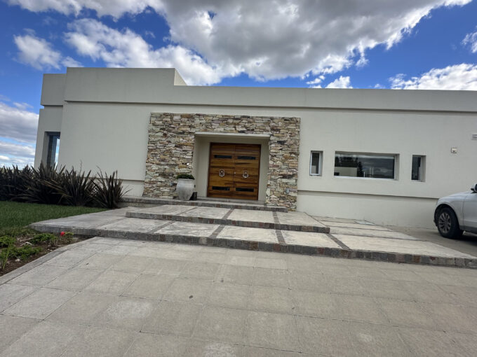Distribuida toda en planta baja, cocina integrada al living comedor por una isla, lavadero, tres dormitorios (uno en suite), vestidor, 2 baños completo y 1 baño toilette, amplia galeria con parrilla e isla, patio con pileta, en el frente espacio para dos vehículos.
