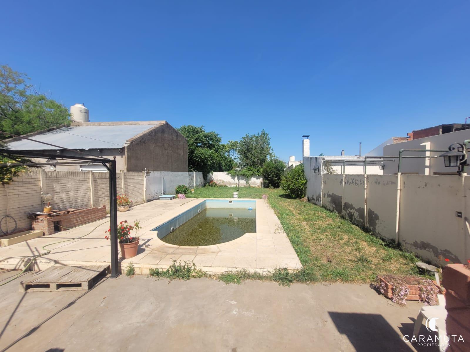 Al final del lote nos encontramos con un patio verde con una pileta, con parrilla y galpón.