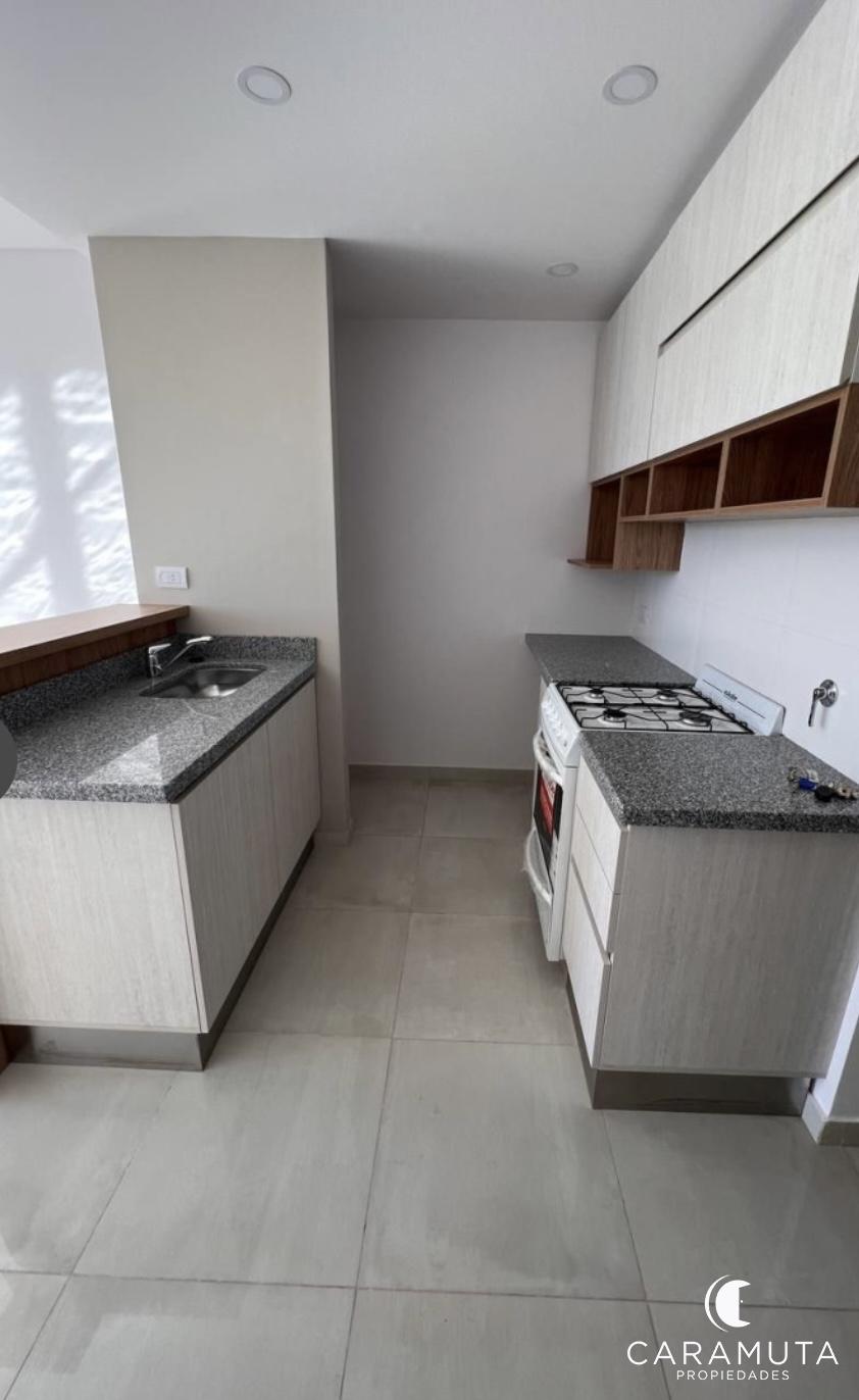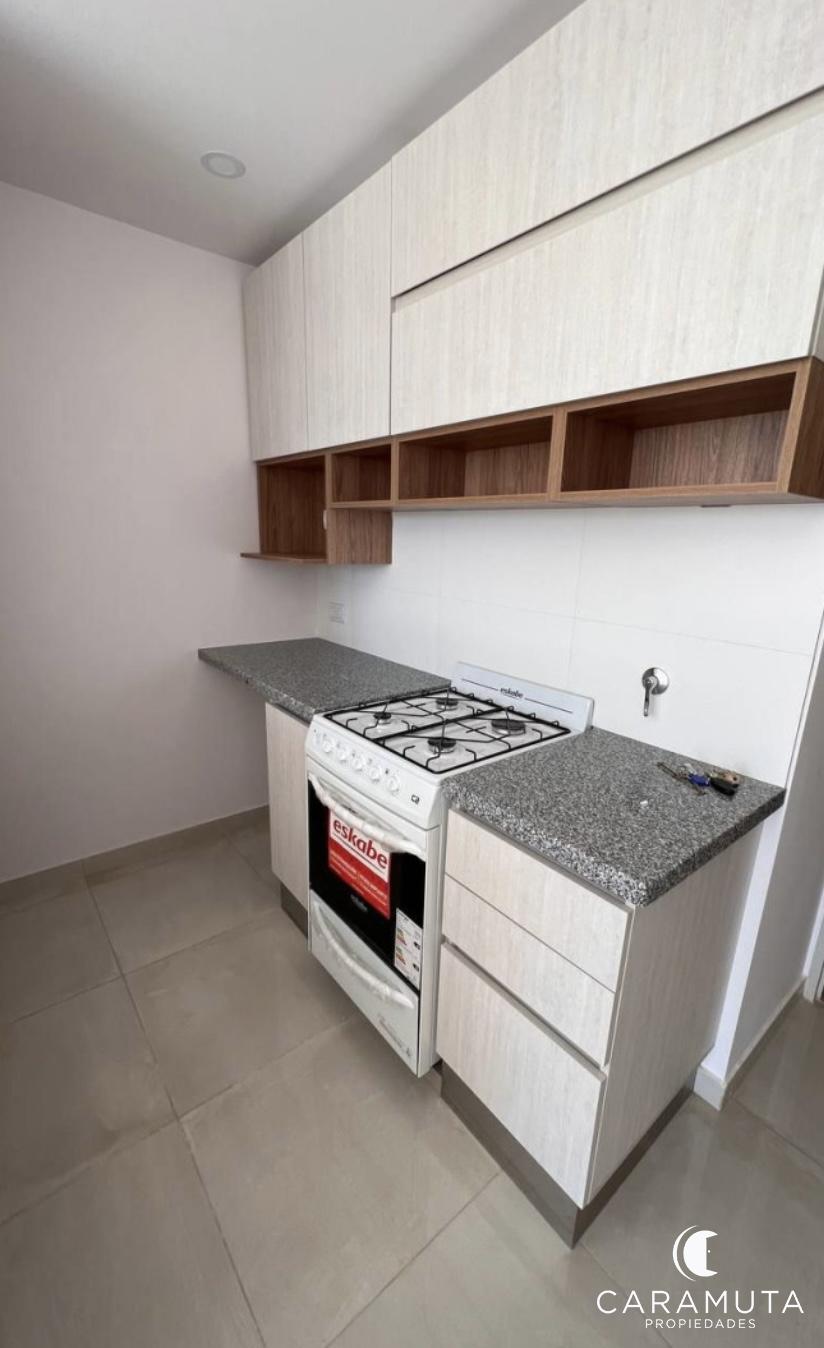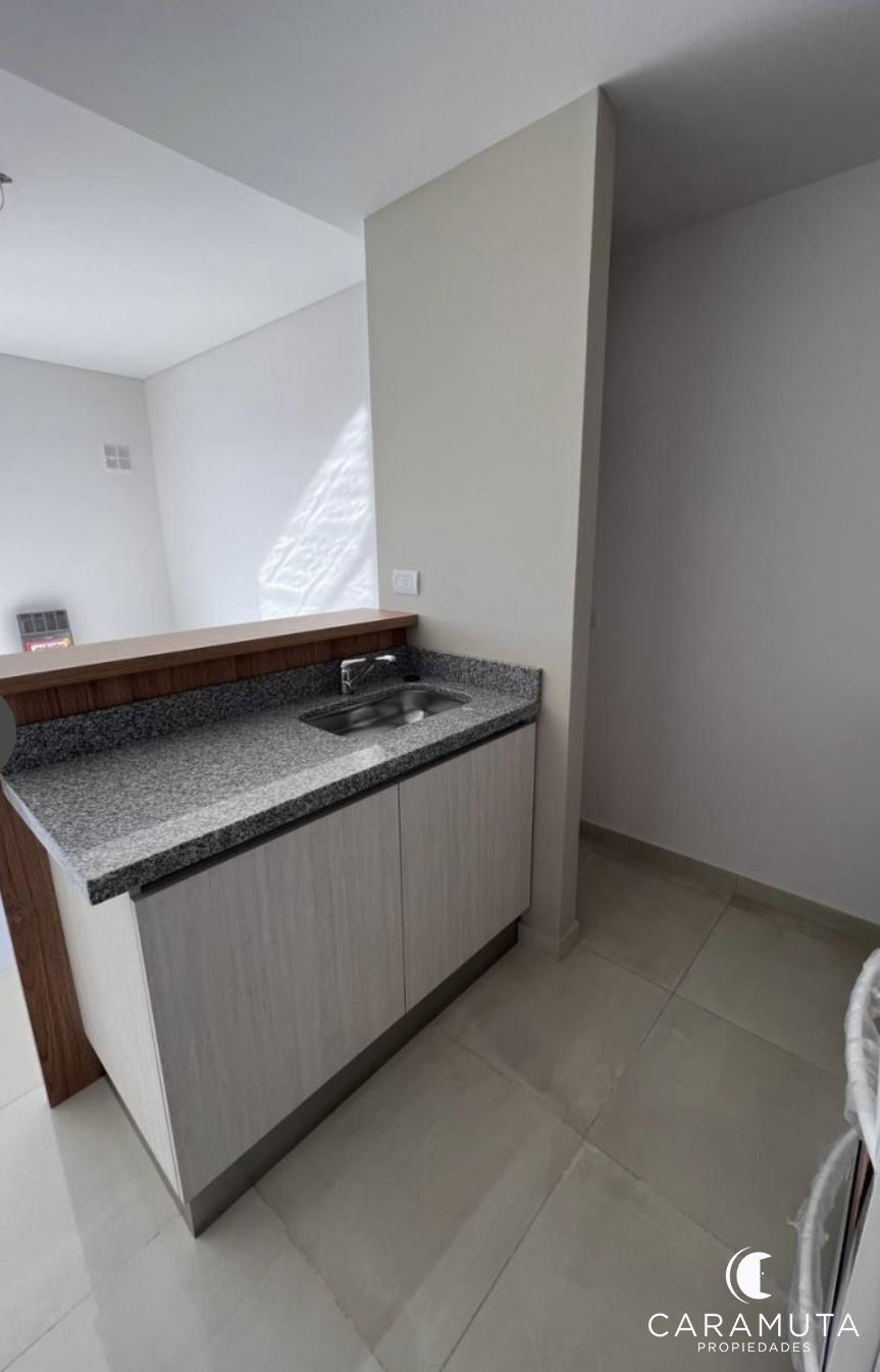 Se distribuye en living comedor con amplio ventanal y acceso al balcon por el dormitorio. Cocina integrada por una isla y doble mesada. El dormitorio con placard y salida al balcon.