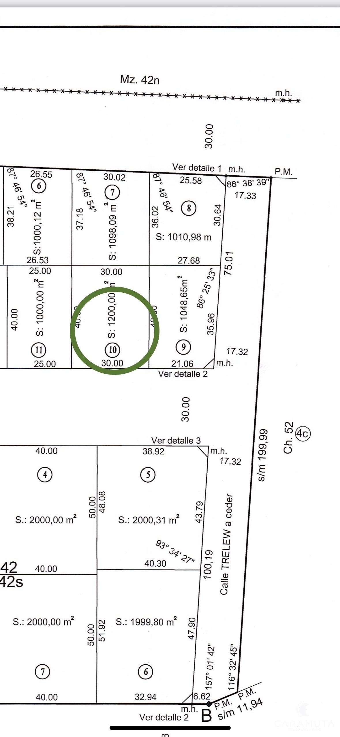 Medidas 30 mts. de frente por 40 mts. de fondo, total 1200 metros.