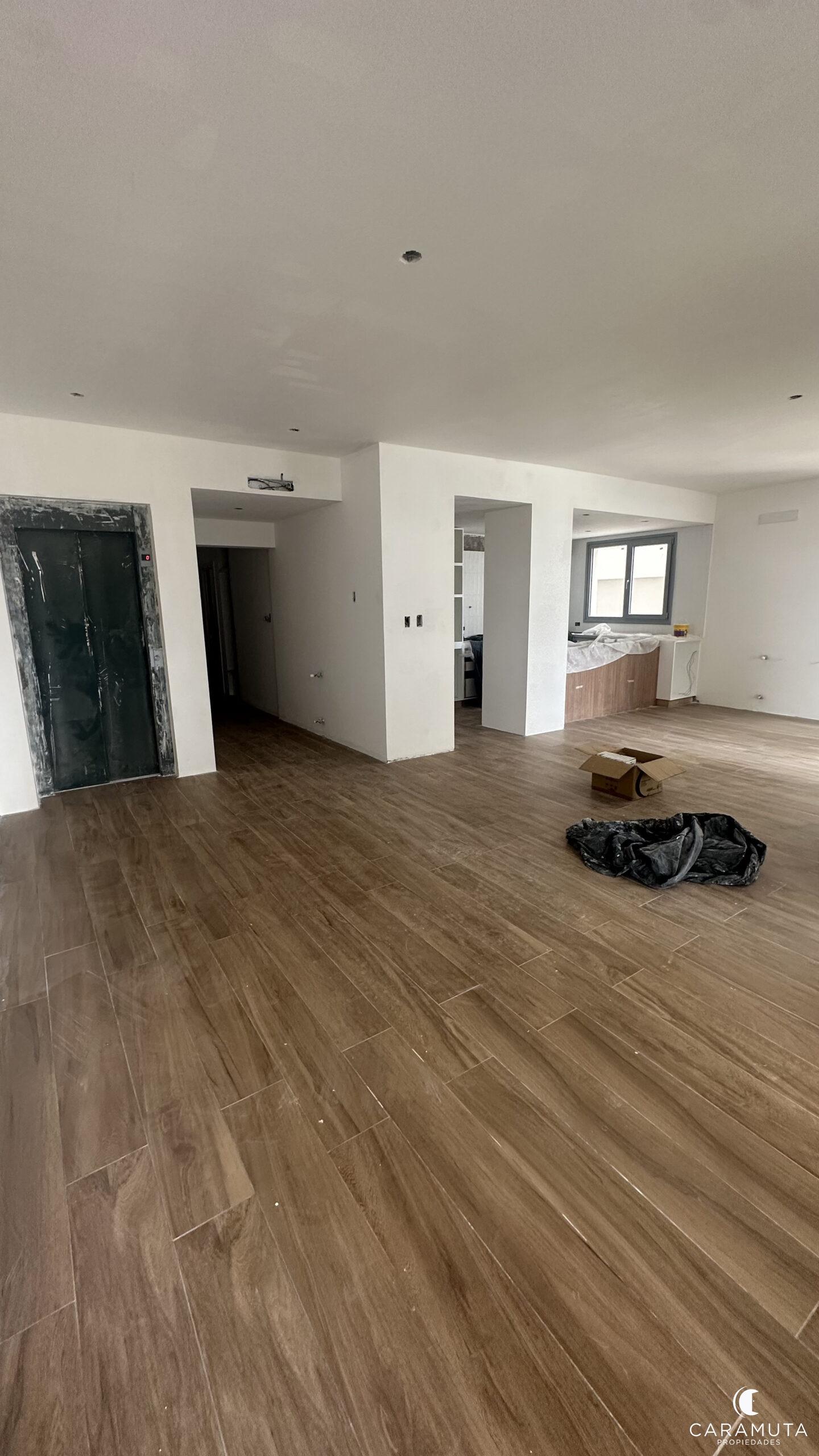 Semipiso de 180 m2 cubiertos se distribuye en living comedor amplio y luminoso con salida al balcón, cocina integrada, tres dormitorios (uno en suite con vestidor), tres baños (uno toilette), lavadero separado con un balcón de servicio, parrilla al lado de la cocina.